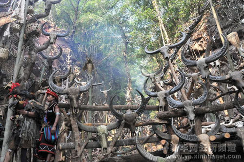 掛滿牛頭的“龍摩爺” 新華社記者 陳海寧 攝