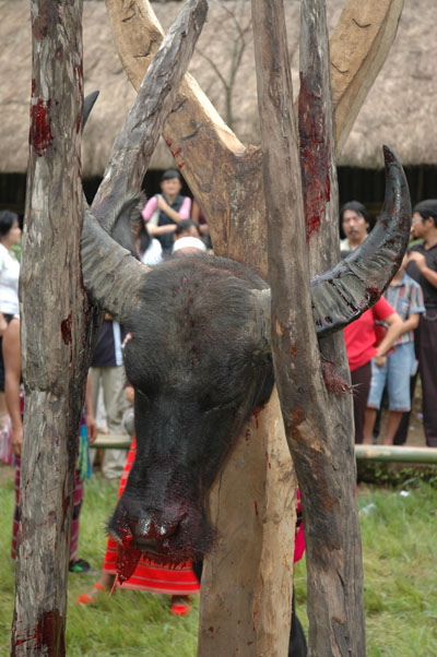 鏢牛結(jié)束后,用牛頭祭木鼓和司崗里。