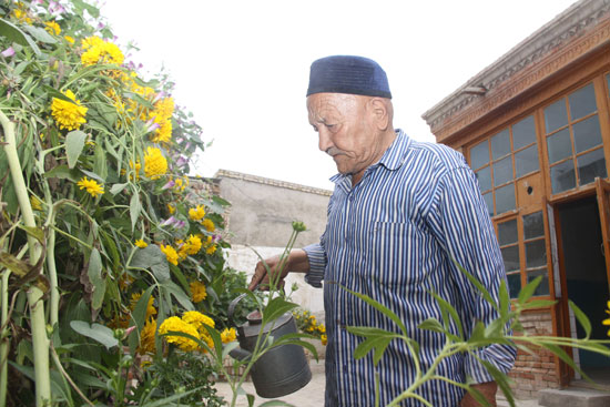 黑亞孜老人閑暇時喜歡擺弄花草