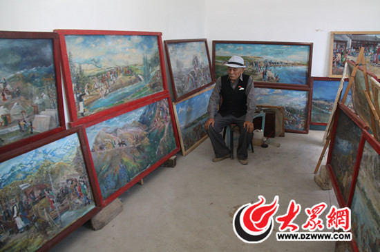 “我畫畫用的畫布是天山白布,一塊錢多錢一米,要是用專業畫布那的七八塊。”50多年的時間,老人先后數次從走西遷路,廢棄的畫布畫筆更是不計其數,才化繪成了眼前這46幅反映錫伯族西遷以來200多年歷史的系列油畫.老人說,他這輩子幾乎都用在《西遷圖》上了。