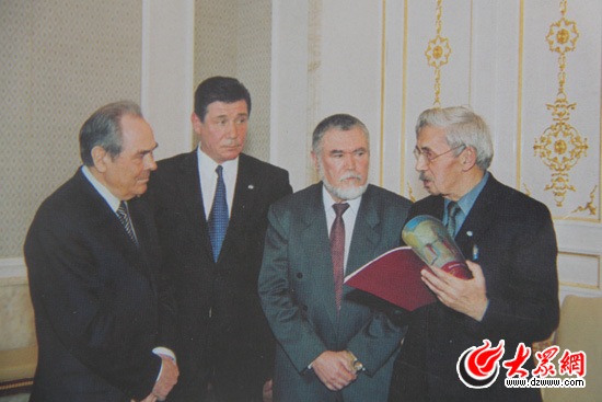 2003年2月,伊力亞爾應(yīng)邀前往俄羅斯韃靼斯坦共和國,受到了總統(tǒng)沙伊米耶夫接見。(左一為時任總統(tǒng)沙伊米耶夫,右一為伊力亞爾)