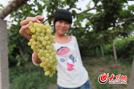 小記者瑩瑩邊聽木卡姆邊品嘗葡萄架上的累累果實