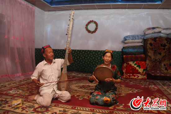 興致所至,吐爾遜·司馬義老人邀請老伴一起演唱起木卡姆,可謂是琴瑟和諧了。