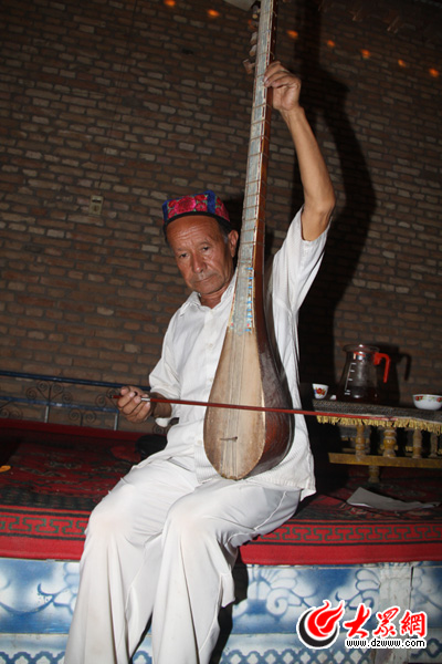 這是翻譯過來的詩一樣優美的木卡姆的聲音,老人逡巡在自己這座小小的博物館里,就像是在自己王國的國王,他用的是另一種遙遠的語言為記者講述著木卡姆更為遙遠的歷史。時而彈唱,老人那蒼涼而悠緩的訴說讓人有欲哭的感動和痛。