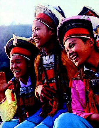 從曲調上看,瑤族音樂的曲調多樣,喜、怒、哀、樂無所不有。據(jù)初步了解,全國瑤族的音樂曲調不下20種。例如,勉瑤《盤王大歌》中的八支曲,即“三逢閑曲”、“三更深曲”、“荷葉杯曲”、“南花曲”、“飛江南曲”、“亞六曲”、“牛角尖曲”、“家先曲”等;拉珈瑤的《香哩歌》、《師公調》;平地瑤的《呦嗨歌》、《啊波咧歌》;布努瑤的《酒歌》、《散旺歌》和坳瑤的《大聲歌》等,不勝枚舉。這些曲調都具有民族性和地方性的色彩。許多歌謠都以其襯詞而得名。其中以《酒歌》、《蝴蝶歌》、《拉發(fā)歌》、《香哩歌》最為著名。