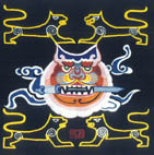 虎被中國人視為百獸之王。它是力量和威嚴的象征,被彝族先民敬奉為原始圖騰,成為吉祥與幸福的象征。由于虎被他們奉為祖先,因而在一些彝族人家中的神龕上供奉虎形祖靈,大門上掛著虎形辟邪,墻壁上掛著虎圖騰壁掛,在村寨路口設有形狀像虎的石虎神。彝族人稱虎神為羅尼,這是他們心中最靈驗最崇高的神。虎神可以為他們消災驅邪,可以保佑他們稱心如意、吉祥平安。他們把自己、家庭、家族的幸福,都寄托在虎神的護佑之下。