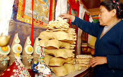 藏族有著自己獨特的食品結構和飲食習慣,其中酥油、茶葉、糌粑、牛羊肉被稱為西藏飲食的“四寶”,此外,還有青稞酒和各式奶制品。