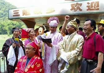 宜州下枧河畔,壯鄉小伙姑娘用山歌對唱,傳情達意。 [詳細]