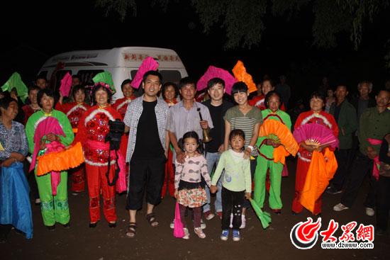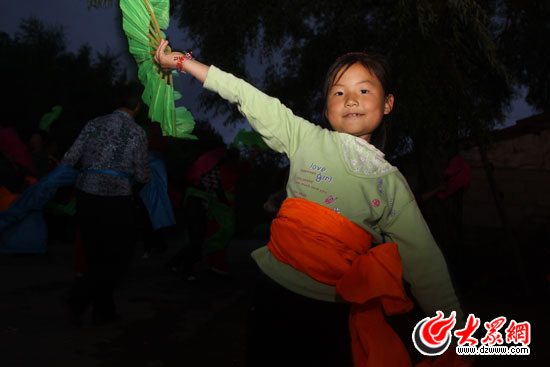 大眾網-聯通3G本溪6月28日報道特派記者 劉國棟)柳樹前,燈底下,綠綢帶,花衣裳,老少爺們扭起來。6月27日晚8點左右,“黨旗漫卷中國紅——走進56個民族家庭大型接力式采風活動”采訪團行駛到本溪縣黃嶺村時,路遇當地村民敲鑼打鼓在路邊村頭排演東北大秧歌,黃嶺村的村長邢建國告訴記者這是村民為慶祝建黨九十周年自發組織的慶;顒印