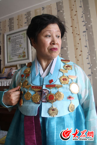 崔基玉的胸前掛滿了榮譽勛章。