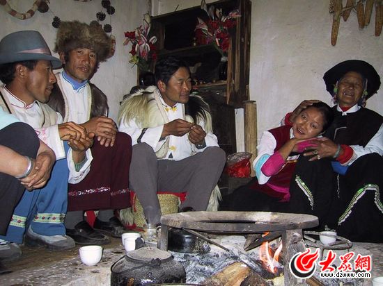 2001年春節(jié),施曉亮在和家度過(guò),這是年夜飯上,兒子達(dá)坡阿玻(左二)和女兒達(dá)坡瑪吉(左一)(注:圖片為施曉亮十年前攝)