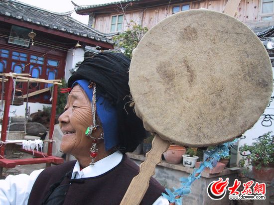 納西歌王肖汝蓮在當(dāng)?shù)匾晃焕先说摹跋矄省鄙铣瑁ㄗⅲ簣D片為施曉亮十年前攝)