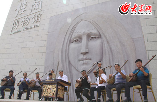 大眾網(wǎng)--聯(lián)通3G若羌9月3日?qǐng)?bào)道(特約記者 施曉亮 記者 王磊)8月初,“黨旗漫卷中國(guó)紅——走進(jìn)56個(gè)民族家庭”采訪(fǎng)團(tuán)走進(jìn)新疆,在樓蘭國(guó)(鄯善)的木卡姆村我們有幸在葡萄架下聆聽(tīng)了維吾爾族非遺傳承人彈唱的《吐魯番木卡姆》;9月3日,在此行新疆的最后一站、漢代樓蘭國(guó)屬地若羌,在樓蘭美女的陪同下,我們?cè)僖淮斡行衣?tīng)到優(yōu)美動(dòng)聽(tīng)、滄涼凄美的維吾爾族民間藝人集體彈唱的《若羌賽乃姆》,對(duì)這個(gè)世代生活在羅布泊旁的民族有了進(jìn)一步的了解。