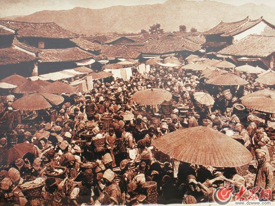 來到麗江古城,每個游客都會去這里最為著名的街道四方街。它是一個方圓400平米的廣場,四周是店鋪,并有六條主要街道與它相連,向古城四周輻射,形成以四方街為商業中心,周圍被客棧包圍的城市格局。在四方街的貿易集市上,有許多身著藍布裙、頭戴前進帽、勤勞的納西族婦女,納西老倌卻很少見到,據說他們或在家里一邊泡著茶,一邊吃著老伴做的粑粑;或在茶座上,邀上幾個老哥,沐浴著溫煦的陽光,談論著天下大事。麗江人溫和、善良、熱情、友好。如果你與他們搭訕,他們會熱情地回答。如果你逛商店,買也好,不買也罷,不會遭到任何白眼。這里的生活節奏十分地緩慢,沒有大城市街頭匆匆忙忙的身影。