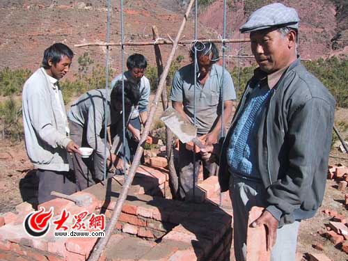 馬洪升憑記憶畫出天香塔的圖樣,指揮本村的村民義務修建天香塔。所有的建筑材料都靠人拉馬駝運上山,吃飯就是在山上用樹枝燒點米飯?粗鴿u具芻形的天香塔,老馬說他比上班還充實。