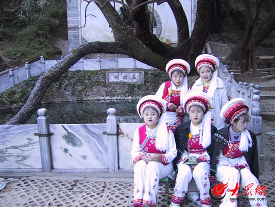 在周城采訪完后,我們來(lái)到了蒼山洱海之巔的著名的蝴蝶泉畔,5個(gè)白族的少女為我們演唱了這首《蝴蝶泉邊》,也叫《大理三月好風(fēng)光》。 如今,在蒼山洱海邊,“金花”已經(jīng)成為一個(gè)民族的名字。對(duì)任何一個(gè)白族姑娘,你只要叫一聲“金花”,就會(huì)和她像老友一樣了。在大理三塔,在蝴蝶泉邊,我們果真遇到了五位美麗的金花(這是發(fā)展旅游的人為安排),我們的采訪對(duì)象段紹升家里也有五朵金花(五個(gè)兒媳婦),這真是令人感嘆的巧合。