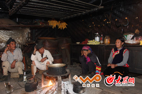 在我們上山之前,歐得得在電話中興奮得告訴施曉亮,他家發生了翻天覆地的變化,讓我們來好好看看,但當我們來到歐得得家,屋內的陳設讓我們有些目瞪口呆。與施曉亮存在電腦上的十年前的照片相比,歐得得居住的那間竹木結構的房子沒有絲毫變化,甚至火塘上的竹壁子、墻上掛著的幾只野羊角、羊角上的蛋殼、墻邊的木柜都沒有變,甚至連木柜上擺著的一只蔑蘿筐連位置都沒動一動。