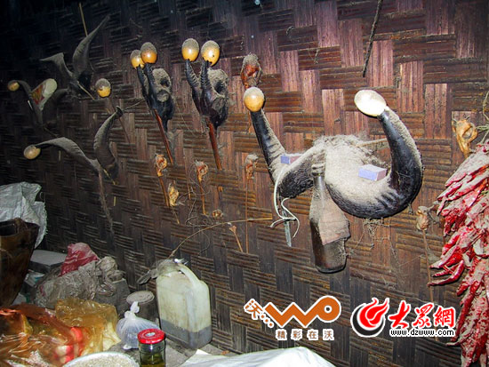 上得山來,驚訝地發現,歐得得家與十年前相比,幾乎沒有什么變化,包括墻上的羊角,以及羊角上的蛋殼