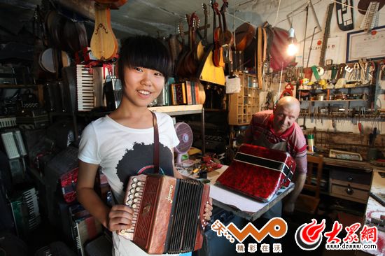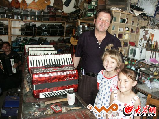 亞歷山大從15歲就開始演習(xí)修理手風(fēng)琴,30年來(lái)他都以此為生,因?yàn)槁殬I(yè)的便利,他也是一位手風(fēng)琴收藏家,目前已收藏了100多架世界各地的手風(fēng)琴。他十分樂(lè)于向朋友介紹他的收藏,小鋪里一排排貨架上擠擠挨挨的手風(fēng)琴。他會(huì)詳細(xì)地為客人講哪一架是德國(guó)的,哪一架是波蘭的,當(dāng)然還是俄羅斯的最地道,他一邊講一邊逐個(gè)彈奏一番,講解三排鍵雙排鍵和單排鍵各有什么特點(diǎn),樂(lè)此不疲。有些手風(fēng)琴盡管式樣陳舊,年代久遠(yuǎn),甚至有上世紀(jì)中葉制造的老古董,從擱架上取下來(lái),拂去浮塵,照樣可以拉出悅耳的音樂(lè)。
