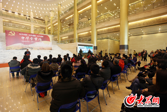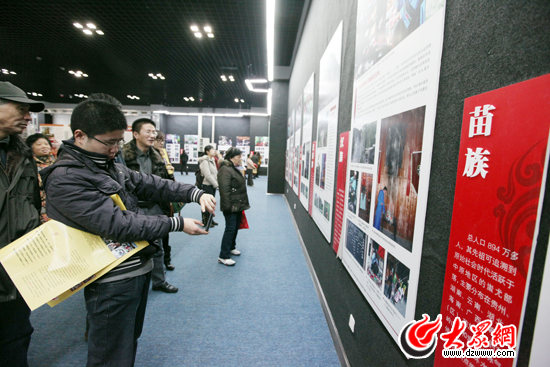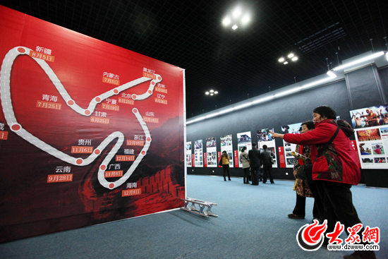 [提要] 今天上午,“黨旗漫卷中國紅”大型接力式采訪活動匯報展開幕式在省博物館(新館)隆重舉行。為慶祝中國共產黨成立90周年,今年6月25日至12月25日,由山東省委宣傳部網絡文化辦公室指導,大眾網、中國民族報發起,聯合全國90家重點地方新聞網站及國內知名媒體共同主辦了“黨旗漫卷中國紅——走進56個民族家庭”大型接力式采風活動,本次攝影展是對活動成果的一次集中展示,展出時間為12月25日至1月3日。