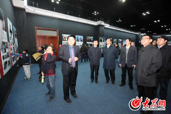 開幕儀式最后,山東省委外宣辦主任李建軍,山東省網絡文化辦公室主任劉致福,大眾報業集團社長、黨委副書記許衍剛,大眾報業集團黨委常委、副總編輯郝克遠,山東省博物館副館長楊波和山東大眾傳媒股份有限公司(大眾網)董事長、總經理林忠禮共同為匯報展剪彩,并觀看了攝影圖片展。
