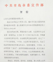| 中共山東省委宣傳部賀信 |