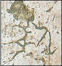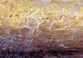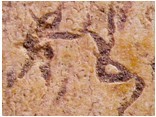 這種春游文化在昌樂(lè)骨刻19號(hào)獸骨殘片中可以清晰的看出,這是一幅頗為生動(dòng)的游玩圖,你看這骨片的最下方好象是一個(gè)頭戴草帽、甩著拐杖的老翁,正在悠然自得的遛彎。上邊好象是一個(gè)孕婦,正在信步向前,后面好象是其愛(ài)子,手中高甩著一根柳枝,或是一件玩具,正朝右方走去(這位老翁的形象,并被甲骨文和金文基本借鑒)。左側(cè)和對(duì)面似乎是兩個(gè)少年兒童,都在歡唱、蹦跳著,正朝對(duì)面方向雀躍而去。最上端好象是一組家庭出行圖,極似一位跨著步子,左手?jǐn)y著一位少兒的青年女子,正在邊走邊回頭向后說(shuō)著什么?后面是一位躬身大步向前傾聽(tīng)模樣的男子,可以看出,這是一家三口正出行游玩。這一家前行的方向與兩個(gè)少年和下邊這位老翁前行的方向相同,可能是那邊有什么表演、一處景觀或其他吸引他們的事件。因此筆者為其取名為“春游”圖。