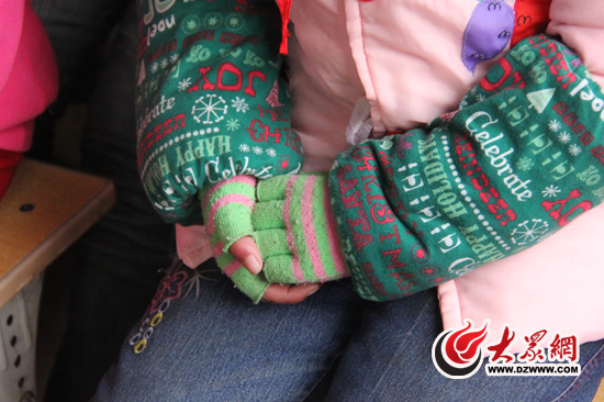 雖然戴著手套,孩子們的手還是凍的發(fā)紅