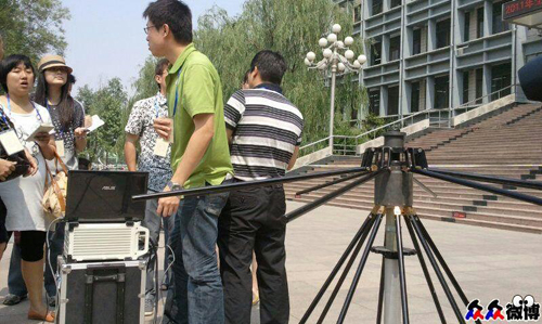 濟南二中考點,濟南市無線電檢測部門工作人員現場監測可疑無線電信號,這樣可以預防和阻斷高科技作弊。(大眾網記者 馮煒程)