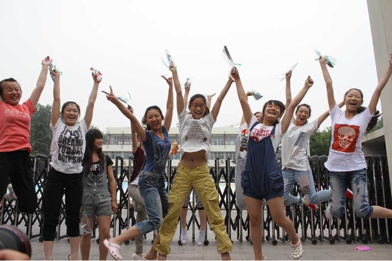 [提要] 2011年高考正式落幕,考生們可以撒歡了,這是6月9日上午最后一科考完后濰坊中學(xué)考點的考生跳了起來——“高考,再見!”