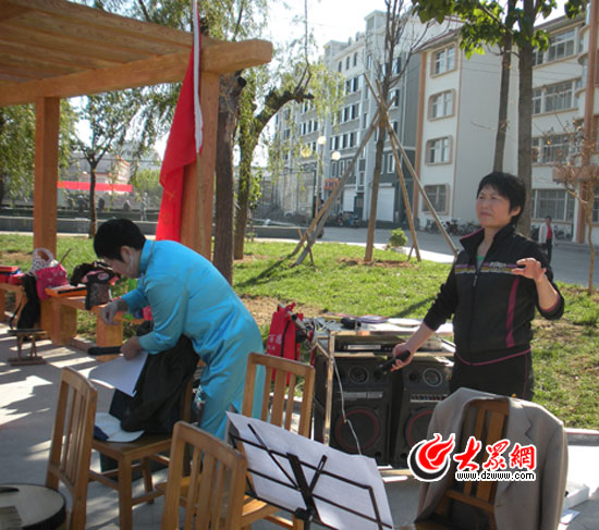 上午8點30分,記者來到老干部活動中心前的廣場,離節(jié)目開始還有半小時,廣場上文化活動“慶九九‘幸福的日子開心過’”的橫幅已經(jīng)掛好。一位正在準(zhǔn)備的大娘告訴我,“李局正在那邊忙著呢”,順著手指的方向,我看到一身黑色運動服,白色運動鞋裝扮的李局長正在為節(jié)目忙碌著。