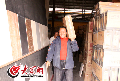 [提要] 塌陷的肩膀,粗壯的胳膊,一件滿是灰塵的迷彩服,一輛破舊的自行車,這是他們的行頭。十步的距離,50斤的重量,平均一天500箱瓷磚,這是他們的工作。今天早上,記者來到淄博市最大的陶瓷建材批發市場,走近普通搬運工這一建材市場最大的群體,親身體驗了這一群體的“假期”生活。