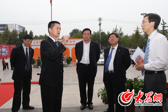 山東黃金集團董事長王建華等領導到會場視察黃金藝術節準備情況,并提出指導意見