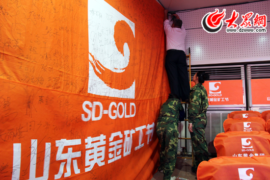 [提要] 山東黃金集團(tuán)的旗幟上,員工們的簽名或龍飛鳳舞、或絹美流暢,原本輕輕的旗幟也變得千斤重
