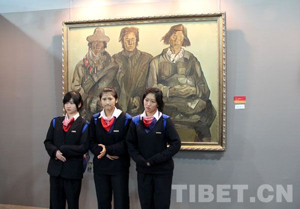 上海東輝職校高中生在參觀“和美西藏”美術作品 攝影:田春艷