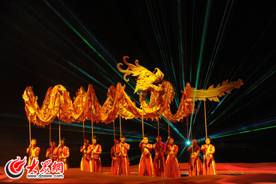 《大河秀典》的核心題材皆取自五千年中原文明史,擷取中原文明中最具代表性的傳說、故事和文化符號(hào)。中原古老的神奇故事、千年的美麗傳說,盤古開天辟地、軒轅、花木蘭、梁祝等五千年中原文化的經(jīng)典人物,在現(xiàn)代高科技的聲、光、電的裝扮中,依次出現(xiàn)在眼前;太極易經(jīng)少林功夫、洛陽牡丹、中國(guó)龍、百家姓在雄渾的音樂中一一展現(xiàn)。