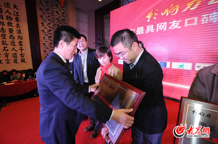 大眾網(wǎng)技術(shù)總監(jiān)李雪修為獲獎單位代表頒獎