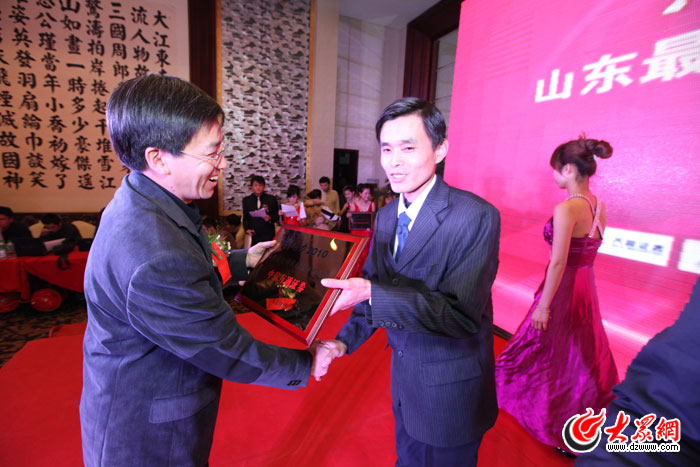 山東大眾傳媒股份有限公司(大眾網(wǎng))董事長(zhǎng)、總經(jīng)理林忠禮為獲獎(jiǎng)單位頒獎(jiǎng)。