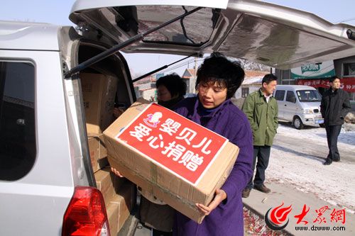 為了確保今天的行程,蒙牛阿拉乳制品有限公司濟(jì)南銷售處的工作人員5點(diǎn)多就起來裝貨,他們帶來了20箱蒙牛阿拉金裝佳智奶粉,足夠孩子們吃1年多。山東國健乳業(yè)的趙洋總經(jīng)理親自駕車,針對(duì)小寶貝們?cè)绠a(chǎn),她特地帶來了兩箱的牛初乳和高培鈣油同補(bǔ),這些都是孩子們必須的保健品。