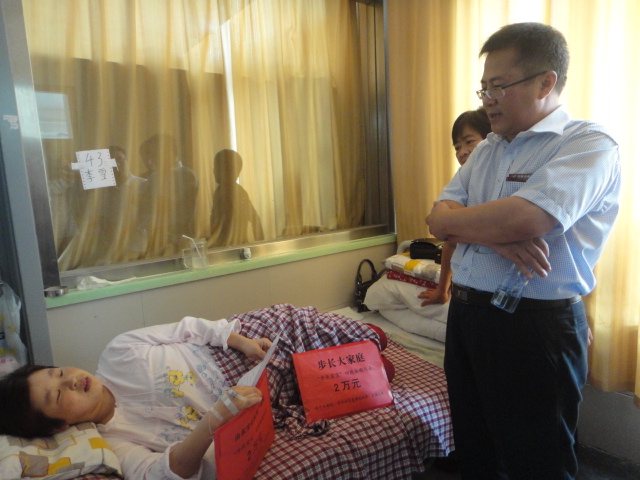 圖為山東步長制藥負(fù)責(zé)人送去慰問金