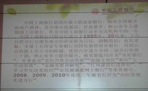 上午11點,到日照工行市行體驗方便、優惠,隨時隨地都可以交費的“網上繳費”業務,并通過召開座談會,聽取銀行理財經理講解工行金融理財服務,讓我們全方位了解了網上銀行的安全、方便,知道根據個人情況怎樣去理財。