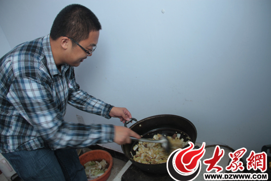 說干就干,記者們馬上行動起來:刷鍋洗碗,洗白菜,切肉,一番準備工作就緒,點爐子開火,倒上一勺豆油,我來當“大廚”,把肉扔到鍋里,伴隨著“滋滋”輕響,一陣陣肉香充滿了整個廚房。肉熟了,又把白菜、粉皮放到鍋里,倒上醬油、水開始燉。這邊炒菜,那邊洗刷碗筷,熘上饅頭。就在菜即將出鍋的時候,有人忽然發(fā)現(xiàn)鍋里居然還有根炊株苗,趕緊拿了出來。一陣緊張的忙碌后,眾記者合力做好的熱氣騰騰的“白菜燉粉條”新鮮出鍋。