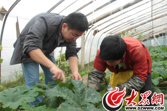 大眾網記者觀察農戶給西葫蘆“抹花”