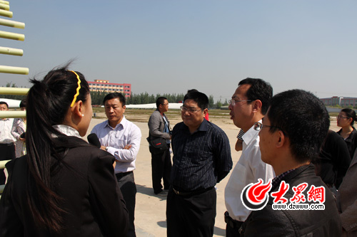 [提要] 今天上午,大眾網總編輯朱德泉和青年記者們一起,在陵縣縣委常委、宣傳部長劉在軍的陪同下,參觀采訪了陵縣經濟開發區,生態科技制品、風電葉片制造、新能源汽車工廠,親身體會到縣城轉方式、調結構,發展起高科技和新能源的高新經濟。