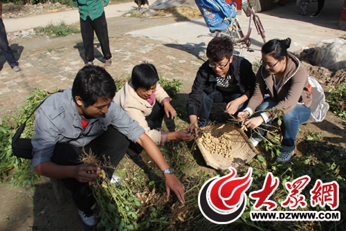 [提要] 今天上午,在前李村村口老李家門前,幾名婦女一邊談笑逗孩子,一邊從花生秸上擼下新鮮的果實。“俺們摘花生不為別的,就是有個事兒做著,有個零嘴吃著。”她們說。