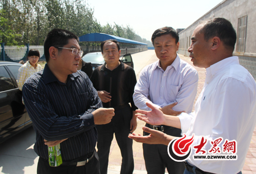 大眾網總編輯朱德泉在陵縣縣委常委、宣傳部長劉在軍的陪同下參觀陵縣開發區企業