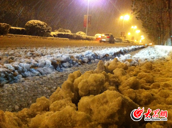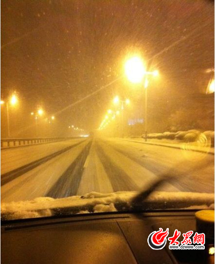20點30分,濟(jì)南市經(jīng)十東路部分路段積雪達(dá)10厘米以上。