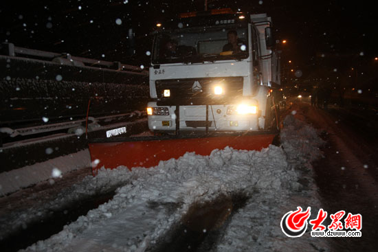29日晚19點,濟南機掃大隊的推雪車開始上路清雪,直到凌晨5點,許多環衛工人仍在工作一線,他們一夜沒睡。