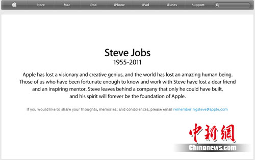 蘋果公司官網證實前首席執行官喬布斯去世