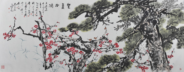 參加大眾網(wǎng)成立十周年書(shū)畫(huà)筆會(huì)的書(shū)畫(huà)家合作的丈二巨幅作品《堅(jiān)貞不凋》。